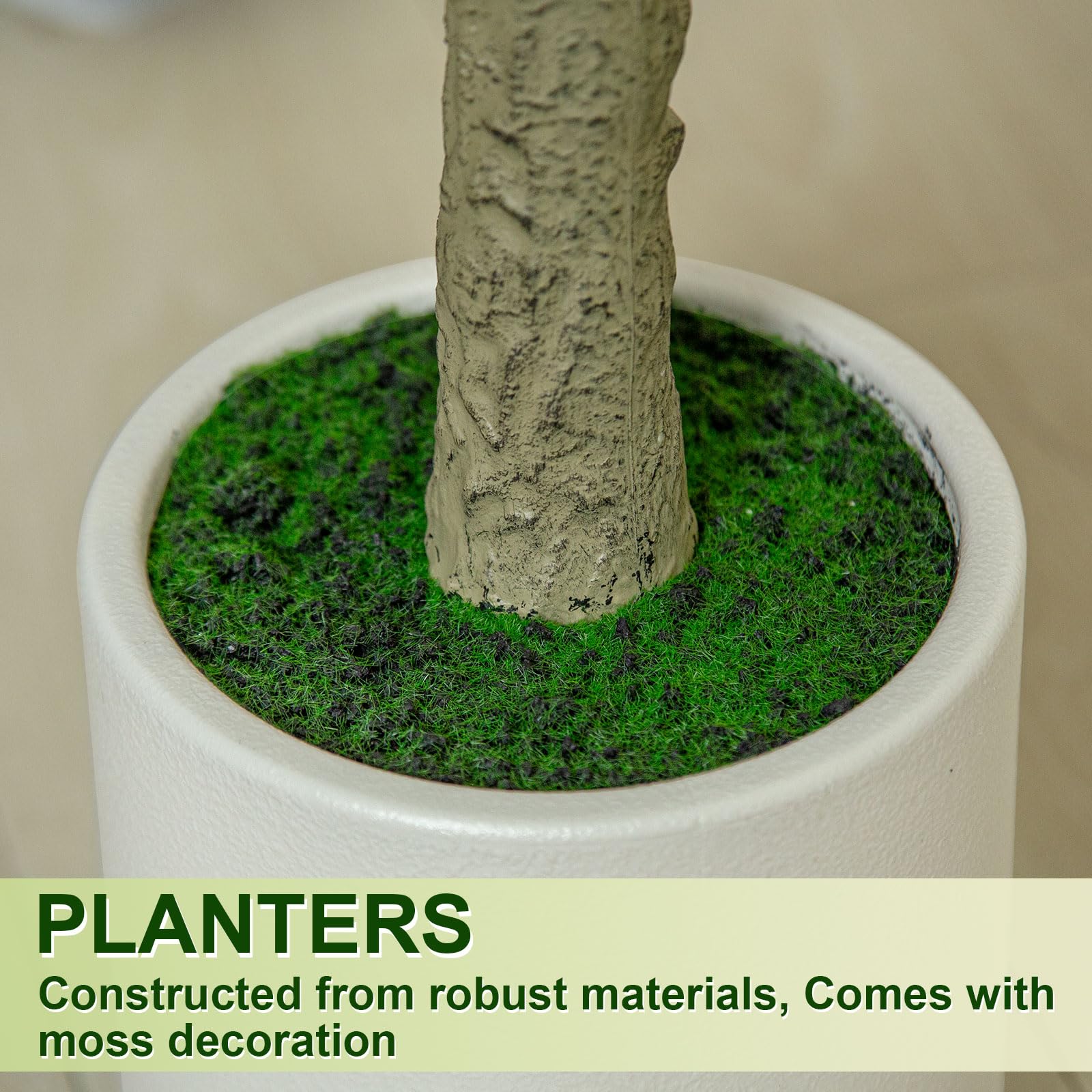 - ✅ Planter Included - Our Fiddle Leaf Fig tree comes with a 7 inch White Planter ,save extra purchase of planter.The artificial Fiddle Leaf Fig tree is pre-assembled in a sturdy plastic planter for easy placement and care.