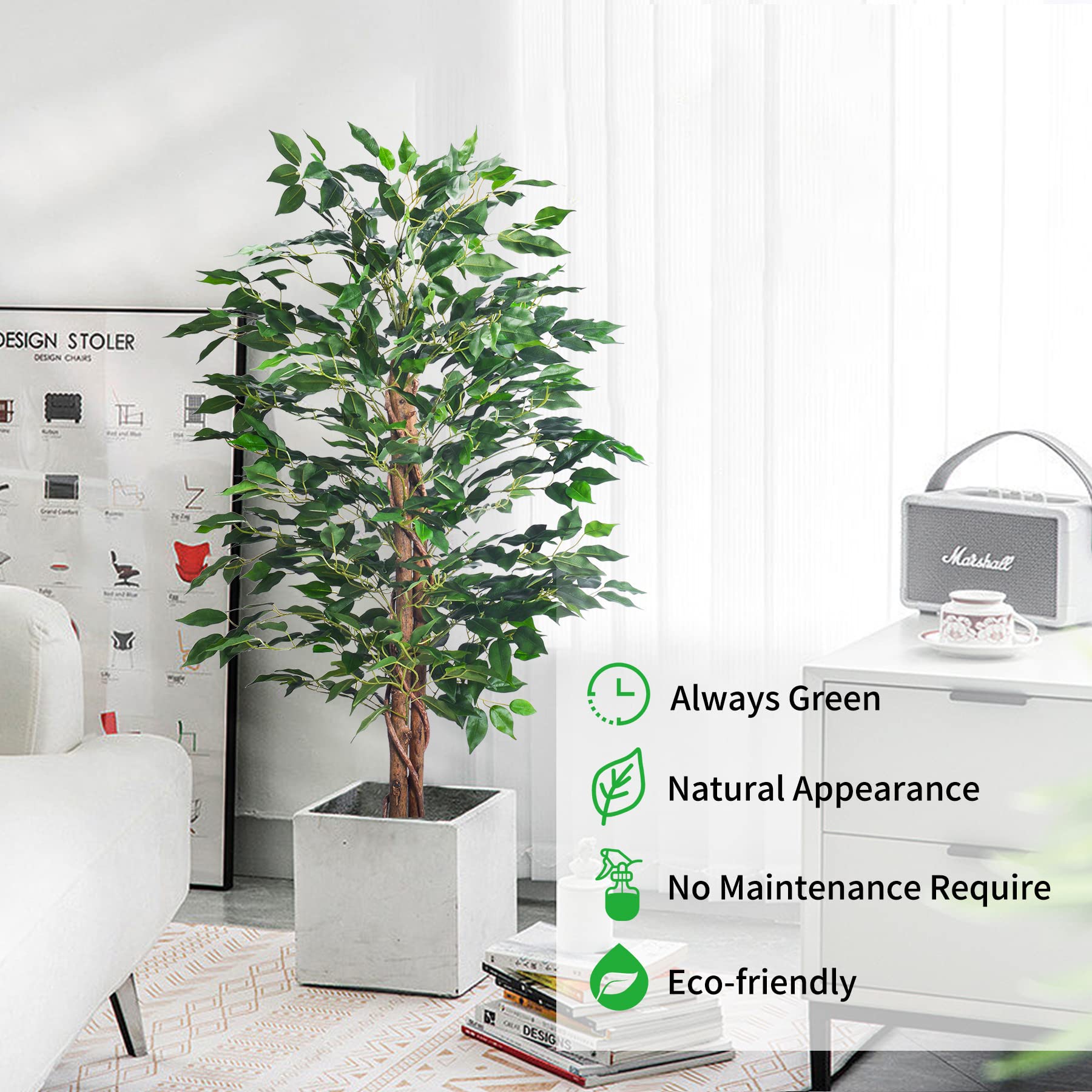 Artificial Ficus Tree 4FT/5FT/6FT Faux Silk Plants with Sturdy Plastic Nursery Pot